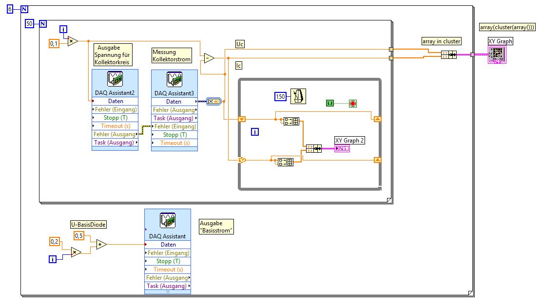 Das ganze soll die Aufzeichnung einer Transistorkennlinie werden. Die Aufzeichnung selber bekommen wir ohne Probleme hin, nur die Verlangsamung einer einzelnen Kurve nicht, soweit ja oben beschrieben.