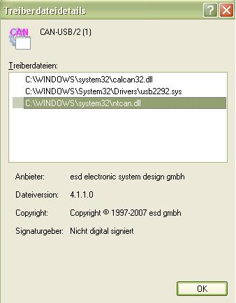 Wo Du die ntcan.dll finden kannst kann ich Dir leider auch nicht sagen. Das sollte mit der Treiberinstallation der ESD Karte mitkommen.