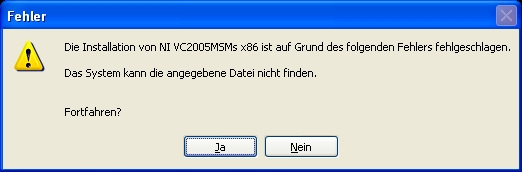 Schwerer Fehler - Installation kann nicht fortgesetzt werden