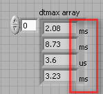 Jetzt fällt mir das erst auf... gottfried, wie hast du es hinbekommen, dass ein Array-Element µs, die anderen drei ms als Einheit haben. Das geht doch gar nicht. Array-Elemente sind doch immer identisch in den Eigenschaften.