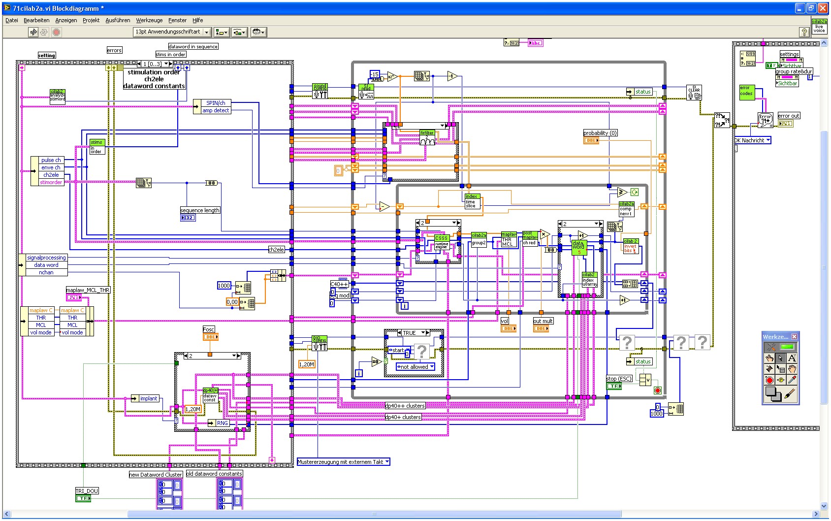 ich arbeite zur Zeit an einer komplexeren Aufgabenstellung, bei der es ein LV Programm zu realisieren gilt. Ich zweifle im Prinzip auch nicht daran, dass ich dies (früher oder später) hinbekomme, nachdem schön langsam endlich klar ist, was man von mir haben will