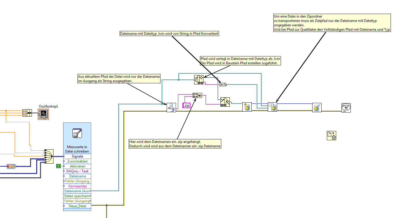Nach einer Minute wird die Datei mit neuem Datum und Uhrzeit über den Express VI "Datei schreiben" abgespeichert.