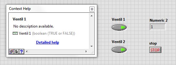 Dieses "Boolean 1" usw. wird übrigens automatisch vergeben, wenn ich in der Controls-Palette den "Push Button" ins Front-Panel ziehe. Und dann wird mir in der Context-Hilfe auch nur noch "Boolean 1" angezeigt, aber nicht mehr der Original-Name des Icons ("Push Button"). Wie soll ich dann also wissen, daß dieses Icon als "Push Button" in der Controls-Palette zu finden ist?