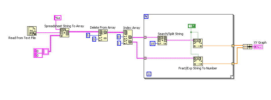 Ja, aber die Daten sind quatsch! Guck mal ins File...das ist ein Waveform-File von LV...komischerweiße kann ich mit "Read Waveform from File" auch nicht vernünftig lesen...am besten macht man "Read Text File", wandelt den resultierenden String mit "Spreadsheet String to Array" in ein 2D-Array, schneidet mit "Delete from Array" die Header-Zeilen ab und schreibt dann auf nen Graph