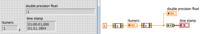 und das ist so völlig normal, dann bei DBL-Wert ist der Zeitwert noch in UTC, die Timestamp Anzeige rechnet aber den Offset deiner Computereinstellungen dazu. Somit wird aus 1 Sekunde 1:00:01 Uhr in der Anzeige (zumindest in der MEZ).