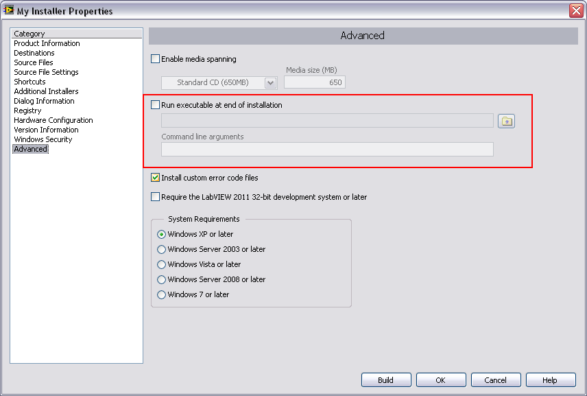 3. Labviewprogramm compilieren -> Installer configurieren und in Advanced den MySQLInstaller eintragen.
