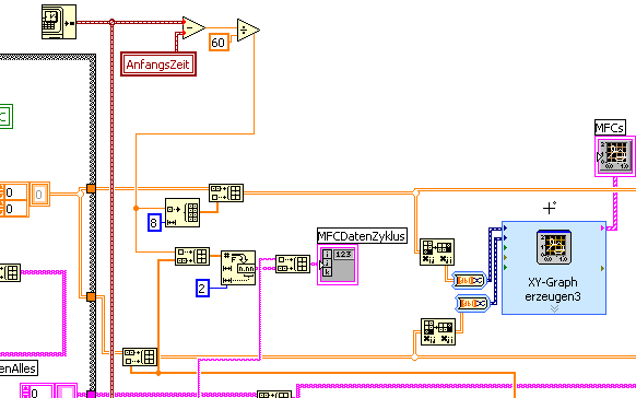 Eine Schleife habe ich, um ein Versuchsprogramm einzulesen und zu bearbeiten, um die Daten dann in die 2 Schleifen oben über lokale Variablen zuzuweisen.