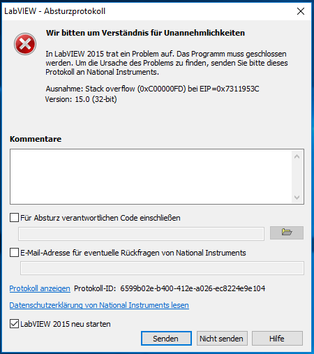 Exclamation RE: LabVIEW stürzt mit Stackoverflow ab (laden von vi)