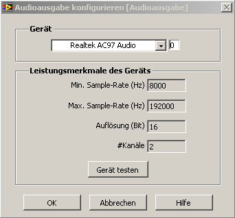 LabVIEW und Soundkarte TerraTec Aureon 7.1 Firewire |