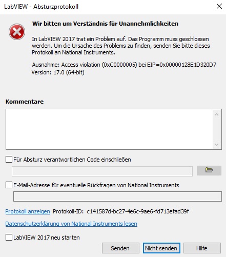 Aha, LabVIEW ist abgestürzt.
