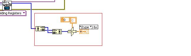 Wenn du weiterhin auf die ModBus-VIs verzichtest, musst du halt selbst die passenden Bytes aus dem String ausschneiden und per TypeCast (wie schon mehrfach gezeigt und erläutert) in ein FLOAT aka SGL umwandeln!