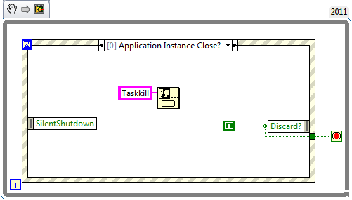 Ich muss mein Einlenken hier nochmal revidieren. Ich habe es extra getestet und ein "taskkill /IM Application.exe" schickt ein Beendigungssignal an die Anwendung "Application.exe". Dieses kann mit dem Event "Application Instance Close?" abgefangen werden.