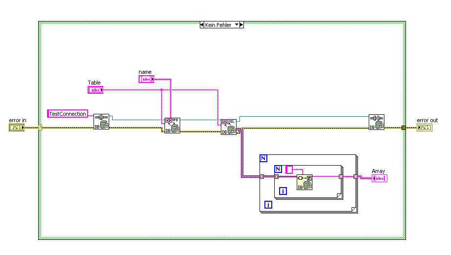 Jetzt will ich Werte einlesen. Die Frage ist, wie prüfe ich in LabVIEW, ob die beiden IDs dann gleich sind? bzw wie regle ich es, dass die Felder die not null sein sollen oder Schlüssel sind auch in LabVIEW nicht leer sind?