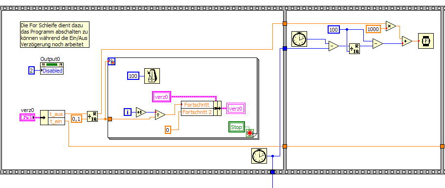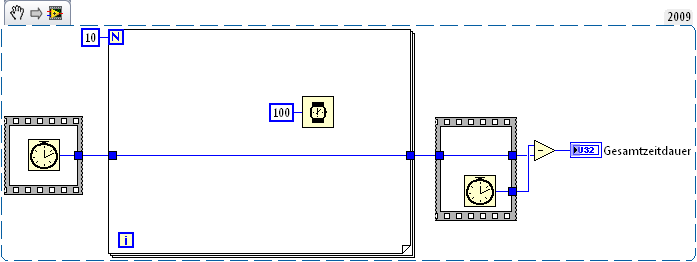 Blockieren würde das Wait nur dann, wenn das ganze Programm in eine Sequenzstruktur eingebettet wäre - was leider Anfänger sehr gern tun, da sie dem Datenflußprinzip nicht so recht trauen. Während das Programm in einer Sequenz wartet, werden alle anderen Sequenzen blockiert.