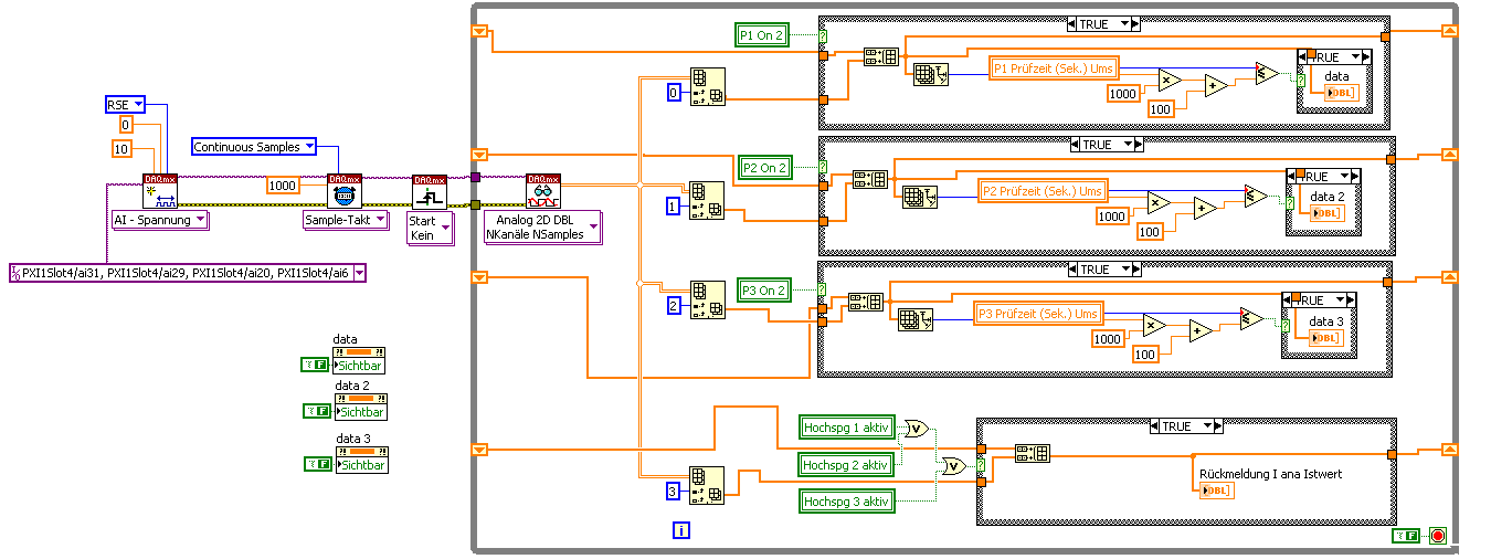 Die Auswertung diese Werte bzw. Aufnahme und Berechnung weiterer Werte erfolgt parallel in einer anderen While Schleife mit einer for-Schleife bzw. Sequenz.