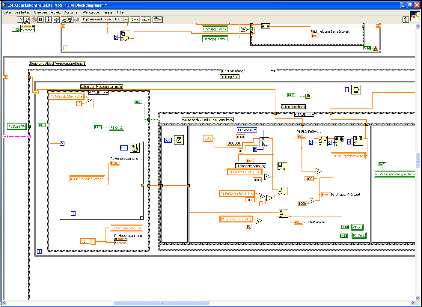 Dazu musst du aber die Erfassungsschleife in ein eigenständiges SubVI auslagern (was an sich schon etwas kompliziert wird). Da dieses SubVI kein FP hat (braucht), geht so für das Erfassen alles viel schneller. Dieses SubVI kannst du in 20ms, möglicherweise sogar 1ms, laufen lassen. Voraussetzung ist natürlich das Verwenden einer, respektive mehrerer Queues.