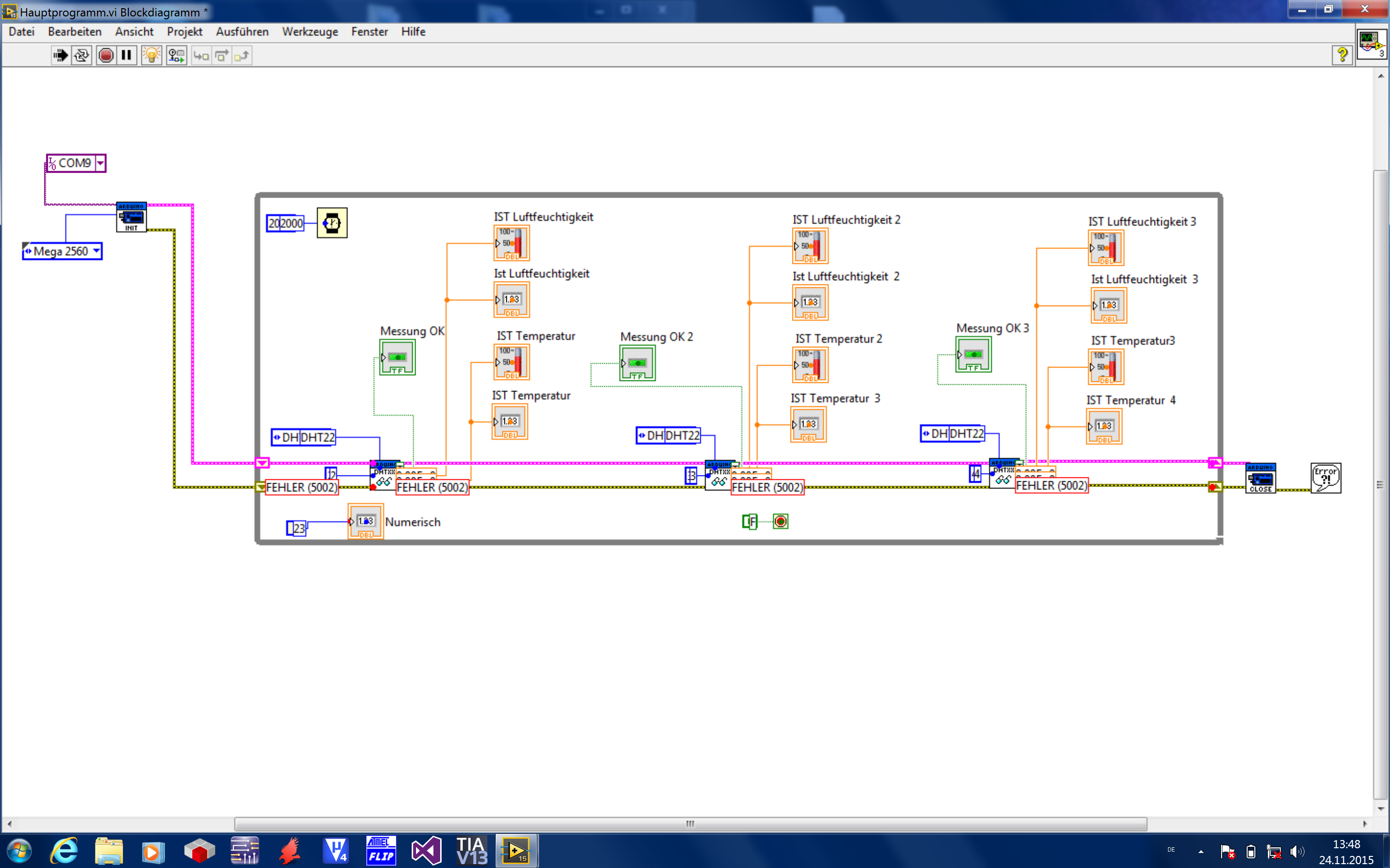 Nein wir programmieren in Labview das Arduino stellt nur die I/Os