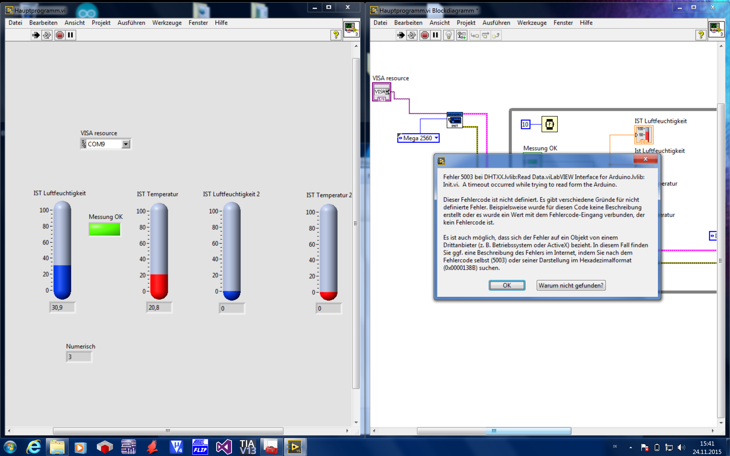 Fehler 5002/5003 ist irgendwo in diesen Arduino-VIs definiert, da musst du mal selbst debuggen/nachschauen, was diese Fehlernummer ausdrücken soll…