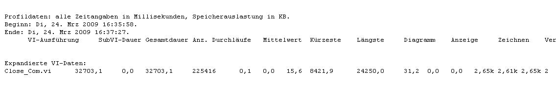 ich habe ein kleines Problem. Ich soll in meinem Praktikum ein Projekt auf Auslastung der einzelnen VIs testen (Über Werkzeuge -> Profikle -> Leistung und Speicher habe ich das bisher gemacht). Jedoch besteht das Problem, dass ich nur die einzelnen VIs starten kann und diese Werte dann speichern kann.
