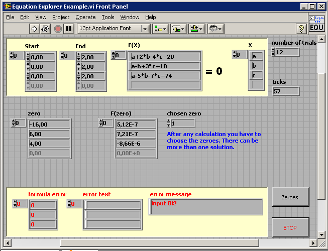 Und hier noch das Bsp aus dem NI-Examplefinder zur numerischen Lösung eines (auch nicht-linearen) Gleichungssystems: