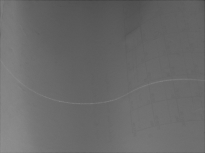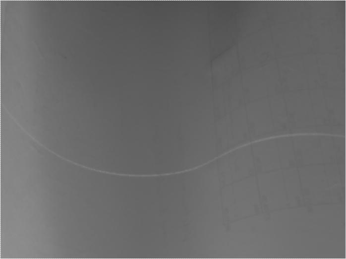 Das Bild ist nur ein snapshot, die Szene wird normalerweise mit einer GigE Kamera aufgenommen, wobei die Linie nur sehr schwach zu sehen ist und unterschiedlich hell ist.