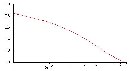 Ja, ich habe nur diese 10 Werte korrelieren lassen. Und die gleiche Anzeige bekommen wie du sie hast in LabVIEW. Wie man auf dem Bild sieht sind die Werte bei Sekunde 9 vertikal gespiegelt, dort würde man eigentlich die 0 setzen und alle Werte links davon ignorieren, Skala der x-Achse setzt man dann auf logarithmisch und dann erhält man das gewünschte Korrelogram. Idealerweise.