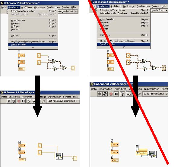 Denn das ganze will ich als SubVi haben, weil ih diese Prozedur meheremale vollziehen muß, und mein Bildschirm nur noch überfrachtet aussieht. Eine Zoom-Funktion gibt es ja leider nicht in LabVIEW.