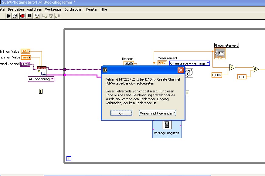 Will ich eine Messung machen mit Daqmx kommt diese Fehlermeldung Bild2.