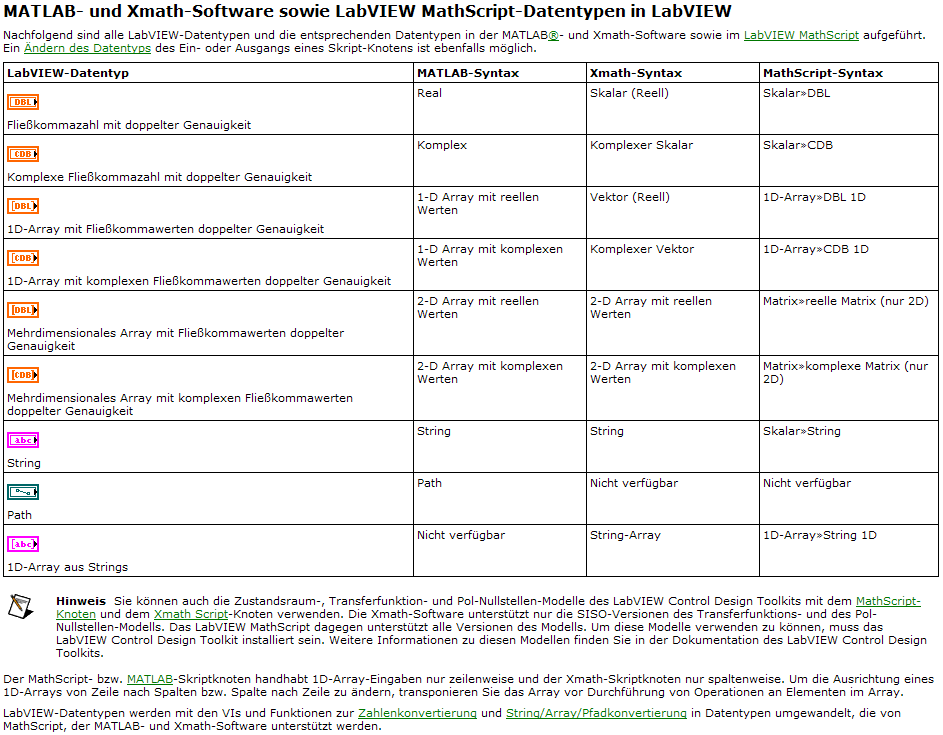 Wenn ich aber die dadurch angelegte Matrix in Mathscript einfüge, dann wird es wieder als dbl betrachtet. Ich muss aufwendige Array-Operationen durchführen, die total unübersichtlich und schwierig zu warten mit der Verdrahtungsmethode werden würden.
