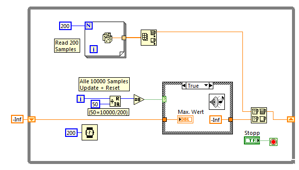 ich muss den Max-Wert bestimmen entweder über die Zeit oder die Größe d.h. während die Schleife läuft, sammle ich immer 1000 Werte und den Max-Wert berechen, also wenn die erste Messung bzw. den Max-Wert berechnet ist, dann muss die zweite Messung starten und so weiter.