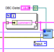Die DBC-Datei wird als Pfad angeschlossen, das String-Array definiert die zu verarbeitenden Signale!