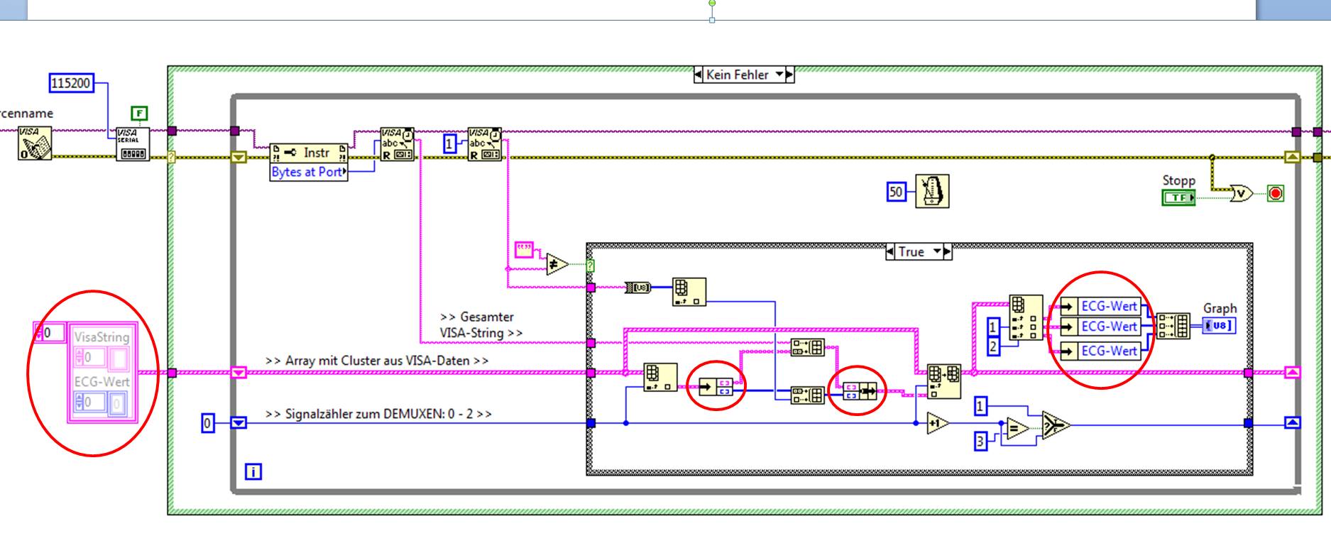 An der Stelle will ich noch einmal kurz anmerken, dass es sich bei dem Programm grundsätzlich nur um ein Test-VI handelt mit dem du den kplt. VISA-String mit deinen "korrekten" EKG-Werten vergleichen kannst.