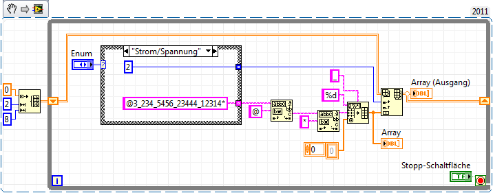 Ich würde das 2D-Array initialisieren und über ein Schieberegister durch eine Schleife geben. Wenn du dann die Auswahl änderst, dann ersetzt du die entsprechende Zeile und übergibst dein 2D-Array wieder ans Schieberegister. Das ganze dann sinnvoller Weise über eine Eventstruktur - da kannst du dann auch gleich deine Auswahländerung abgreifen und ggf. als Arrayindex verwenden.