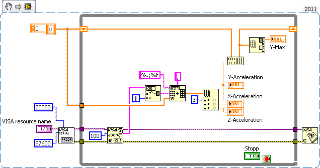 Dein VI enthält nur eine While-Schleife. Die innere Whileloop enthält eine etwas krude Methode, den String in ein DBL-Array umzuwandeln: SpreadsheetStringToArray wäre hier wohl deutlich übersichtlicher...