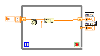 Die FOR-Schleife ist für die Katz. Du erstellst immer ein Array mit nur 1 Wert, schiebst das in in eine For-Schleife ohne weitere Bearbeitung, und somit kommt da immer ein Array mit genau 1 Wert raus. Das Schieberegister gehört in die While-Schleife. Innerhalb der Whileschleife brauchst du ein "Build-Array", indem du alle Teilmessungen selber zusammensetzt.