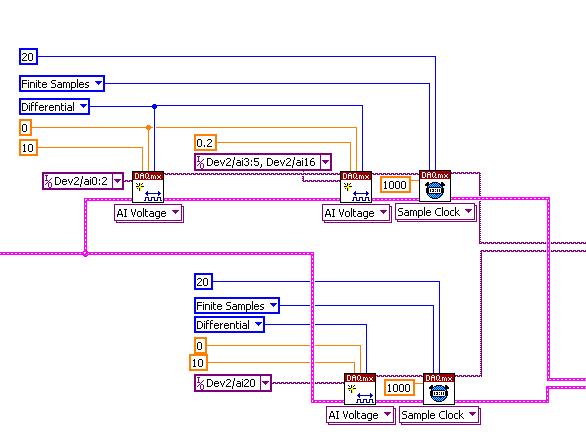 Außerdem ist nicht ersichtlich, wie du die DAQmx-Reads konfiguriert hast (Samplerate, Anzahl Samples)...