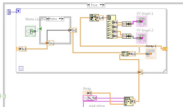 Diese möchte ich jetzt am besten in eine Excel Tabelle oder ein Array schreiben und dann "live" in Labview 2 xy-Graphen erstellen, jeweils Widerstand (Y-Achse) über Temperatur (X-Achse).