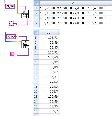 Wenn ich als delimiter das CR setzte, schreibt er mir alle Werte mit jeweils nur 2 Kommastellen in jeweils eine Zeile. Immer noch unpraktisch, aber die Zahlen sehen besser aus. Ich verstehe nicht, wieso er das ändert?