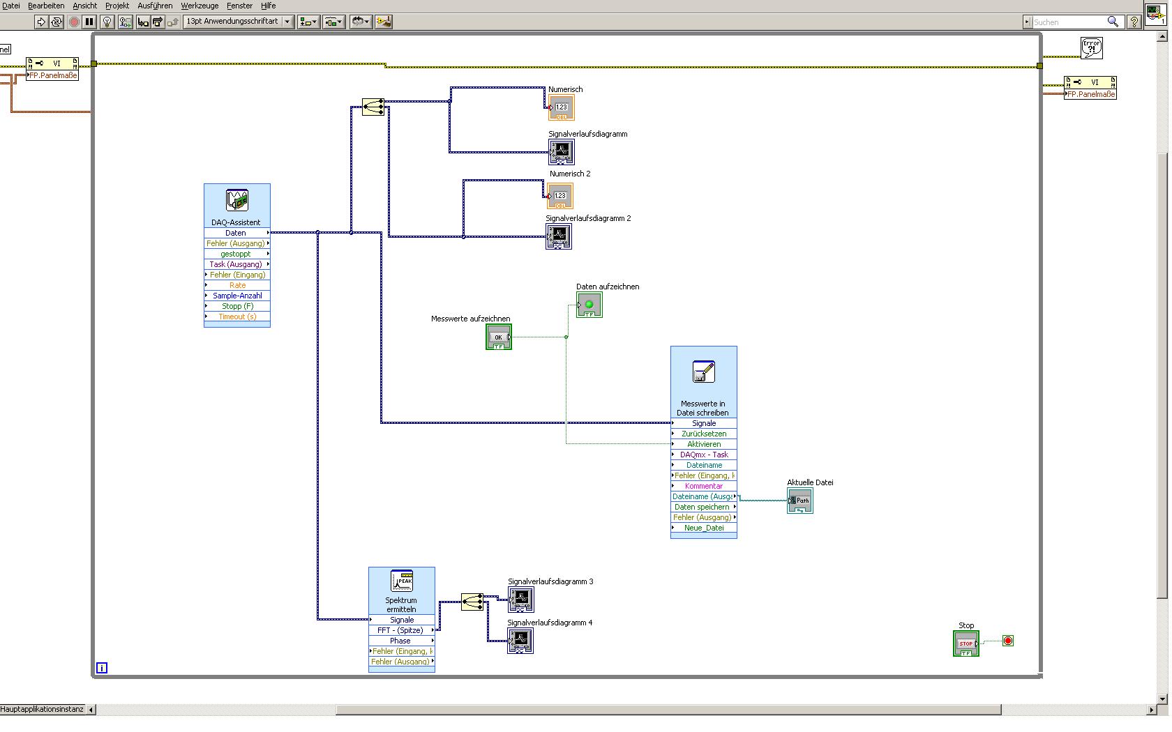 Aber du solltest das ganze nicht mit Express VIs machen. Ist zwar für den Anfänger das einfachste, wenn du dann weiter an deinem Programm arbeitest, wird der Speicher und CPU bedarf enorm.