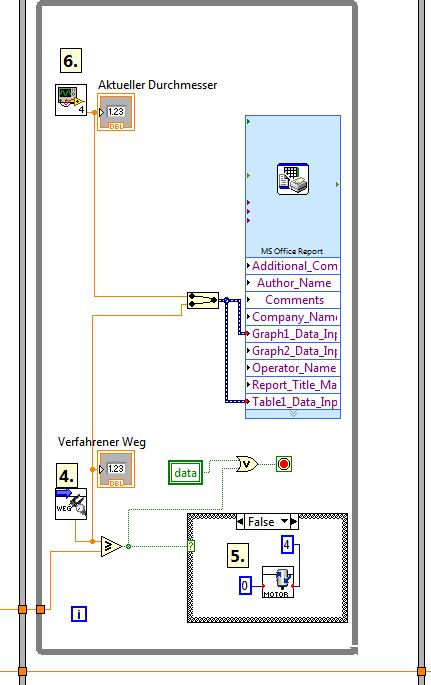 Zunächst eine kurze Zusammenfassung was ich machen möchte: Ich messe einen Weg mithilfe eine Inkrementalgebers und gleichzeitig eine Spannung über das NI-USB-6009. Ich möchte, um genauer zu sein einen Profilverlauf aufzeichnen. Die Messdaten sollen in einer Excel-Datei gespeichert werden, in der zum einen die Messdaten in zwei Spalten aufgeführt sind und zum anderen ein Graph erstellt werden soll. Der Graph sollte auch ein normales Excel-Diagramm sein und kein Bild. Ich arbeite mit Labview 2009 und dem dazu passenden Report Generation Toolkit (nachfolgend RGT genannt).