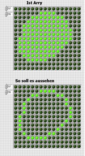 Wie kann ich eine 2D Array dazu bewegen das sie Werte um einen Wert vergleicht. Das obere Bild ist mein Ist Stand. Ich möchte aber eigentlich nur den Rand als Wahr angezeigt bekommen.