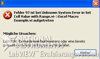 ' schrieb:.... Wenn ich nun dein vi öffnen will kommt die angehängte Fehlermeldung 2.... liegt denn die angesprochene *.xls wirklich neben dem ausgeführten VI?