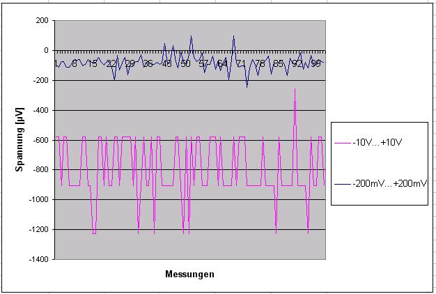 Ich habe ca. 100 aufeinanderfolgende Messungen mit beiden Einstellungen bei (konstanter) Raumthemperatur durchgeführt und einen konstanten Unterschied von ca. 0,8mV herausbekommen (siehe Anhang). Dies entspricht ca. 20K Unterschied!!!