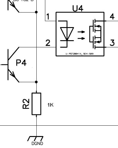 Die Basis des Transistors (P4) kann direkt an den Digital Ausgang deines Moduls. Der Anschluß 1 des Bausteines AQY geht an 5V. Solltest Du mehr als die 5V verwenden muß R2 größer gewählt werden.