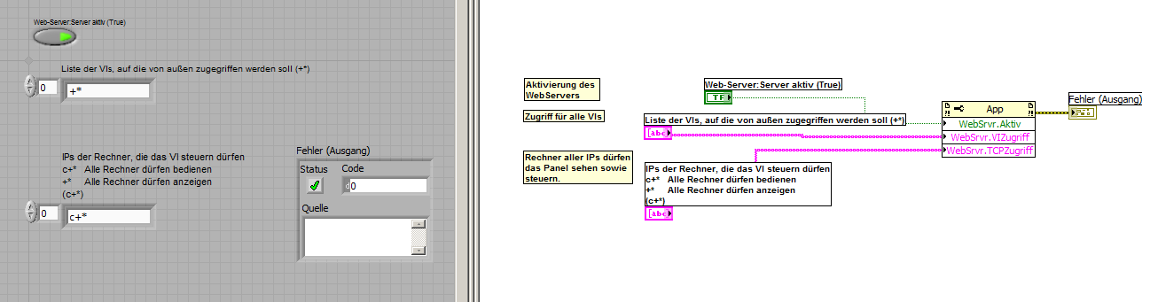 Mit dem VI und den Eigenschaftsknoten( siehe vorherige Antwort) stelle ich ja alles ein, welchen Port ,IP, Webserver aktiv etc.