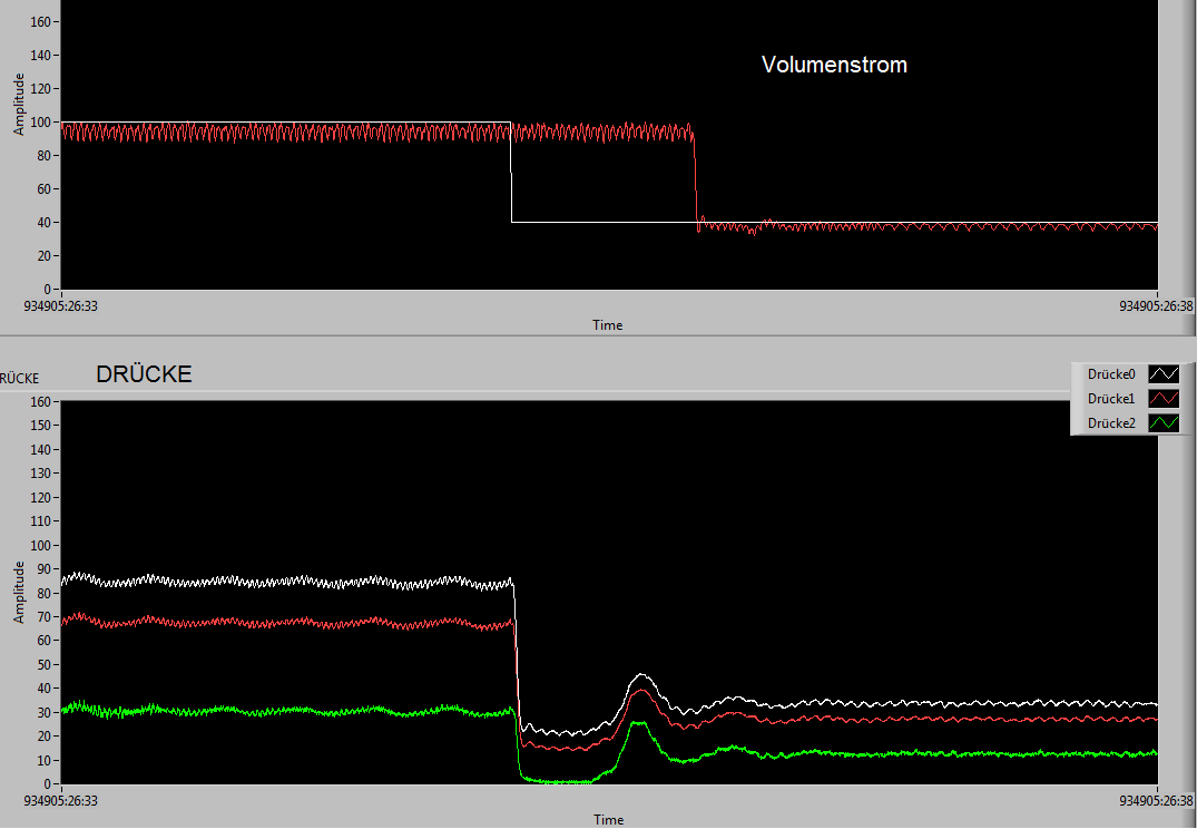 Ich messe nach dem Volumenstrom auch die Drücke die sofort reagieren... wenn das Istsignal dann sinkt gibt es allerdings noch einen kleinen Ausschlag den ich mir nicht erklären kann...