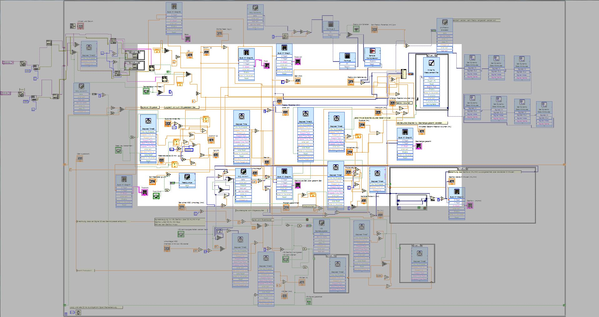 Dementsprechend sieht auch mein Labview Programm aus, dass von Zeit zu Zeit mit Steigenden speziellen Anforderungen wuchs.