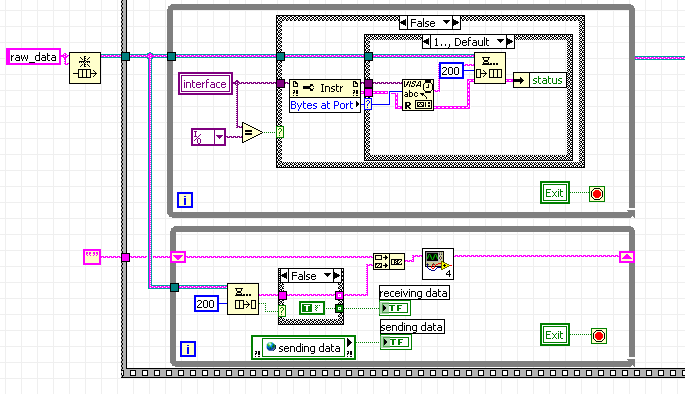 Also: Ich möchte über LV mit VISA einen Messverstärker ansprechen, der im Normalmodus permanent seine Messwerte auf die serielle Schnittstelle schreibt. Es werden für jeden Messwert 5 Bytes übertragen: