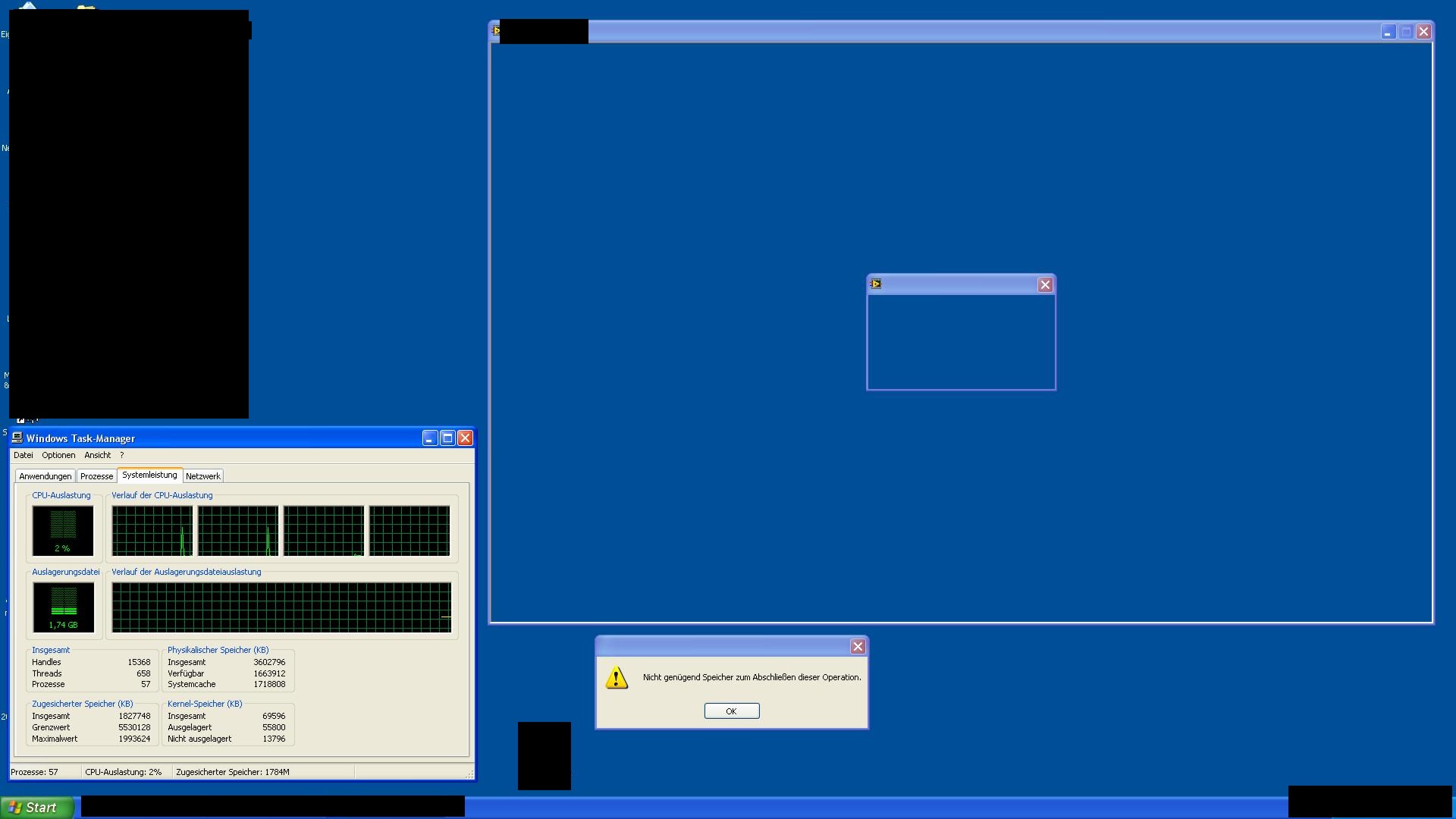 "Nicht genügend Speicher zum Abschließen dieser Operation"