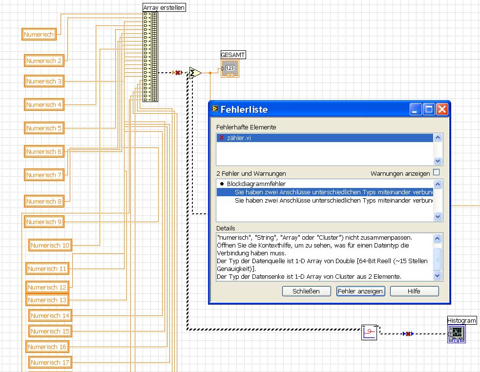 im anhang jeweils ein bild vom frontpanel und blockdiagramm mit der fehlermeldung